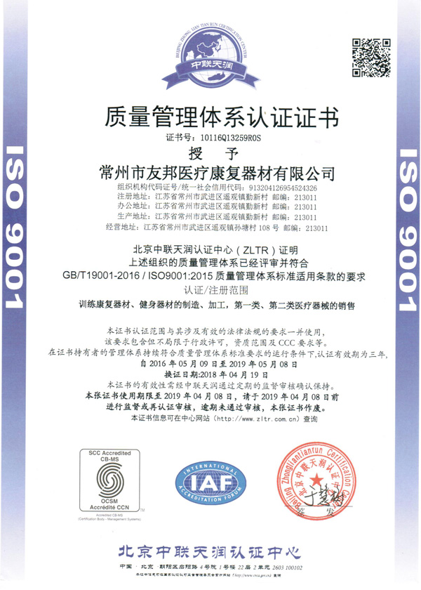 常州市友邦醫(yī)療康復器材有限公司位于江南水鄉(xiāng)常州市遙觀鎮(zhèn), 緊鄰京滬高鐵、滬寧高速公路、沿江高速公路和312 國道,交通十分便利。公司是國內(nèi)生產(chǎn)康復器材的 大型企業(yè)之一,有著完善的硬件設(shè)施和規(guī)范的管理體系。公司借鑒并吸收了業(yè)界康復器材技術(shù),逐漸發(fā)展成為集開發(fā)、生產(chǎn)、銷售于一體的生產(chǎn)企業(yè)。公司現(xiàn)主要產(chǎn)品有牽引治療儀系列、步態(tài)訓練系列、上下肢運動系列、全身運動系列、水療系列、兒童康復系列等多個系列產(chǎn)品。